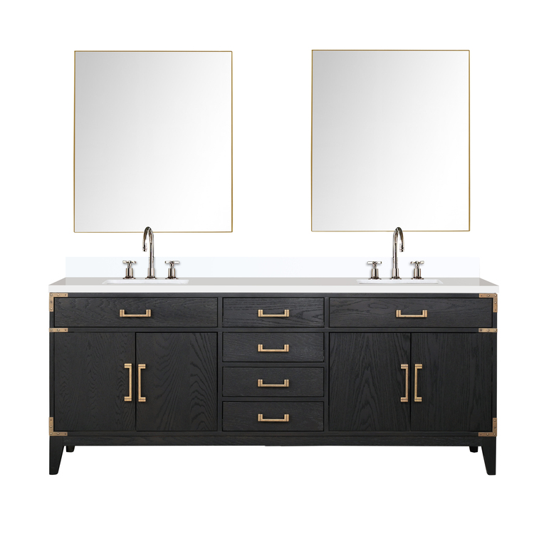 • Lexora Laurel 80 in W x 22 in D Black Oak Double Bath Vanity, Cultured Marble Top, Faucet Set, and 36 in Mirrors image - 1