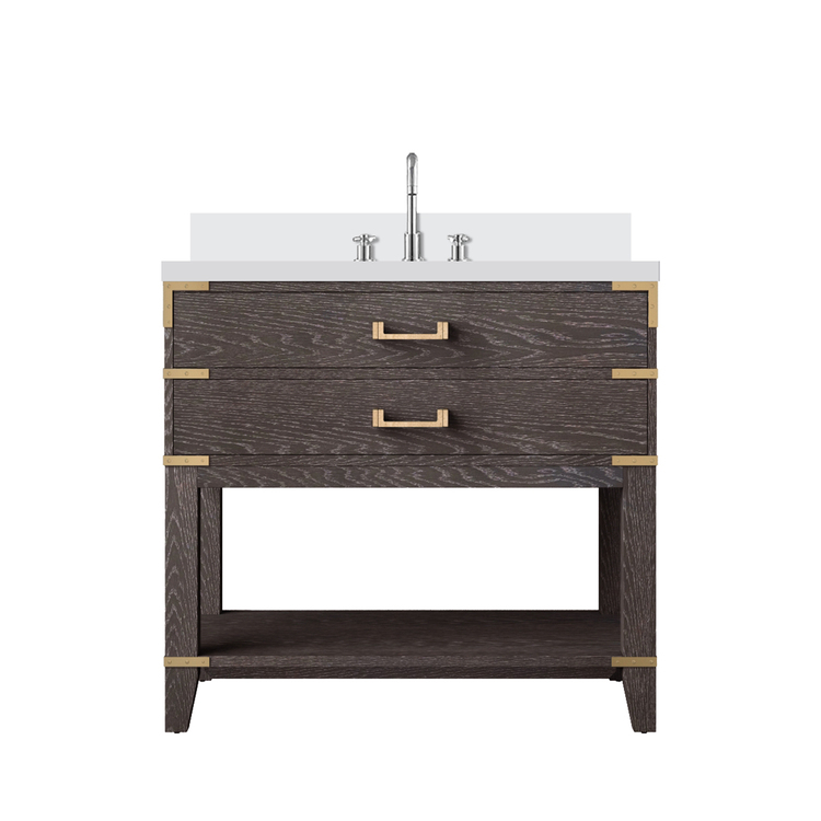 • Lexora Norwalk 36 in W x 22 in D Brown Oak Single Bath Vanity, Cultured Marble Top, and Faucet Set image - 1