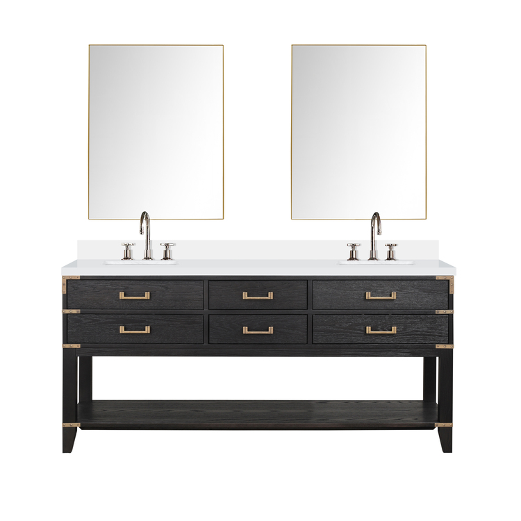 • Lexora Norwalk 72 in W x 22 in D Black Oak Double Bath Vanity, Cultured Marble Top, Faucet Set, and 34 in Mirrors image - 1