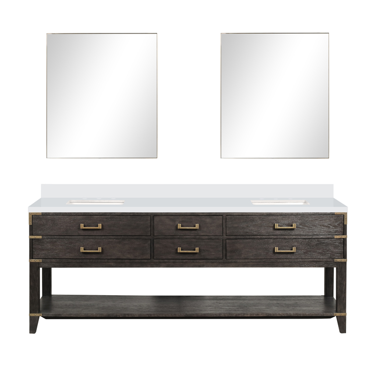 • Lexora Norwalk 84 in W x 22 in D Brown Oak Double Bath Vanity, Cultured Marble Top, and 36 in Mirrors image - 1
