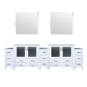 • Lexora Volez 108 in W x 18.25 in D White Double Bath Vanity with Side Cabinets, White Ceramic Top, and 34 in Mirrors image - 1
