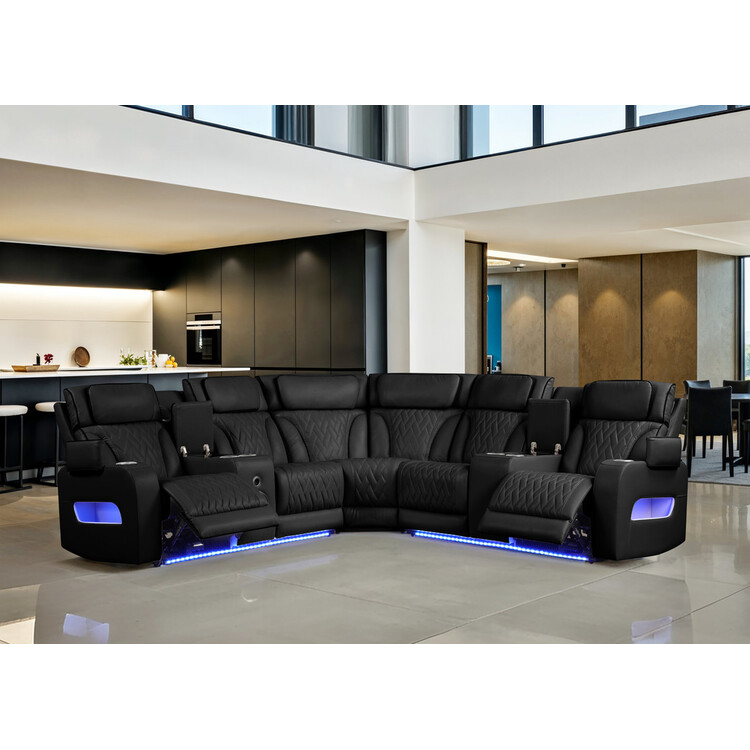 • Lilola Home Jazz 117"W Leather Aire Transformer Power Reclining Sectional Sofa with Power Headrest, Bluetooth Speakers, LED Lights, USB & USB-C Ports, Storage & Cupholders image - 1