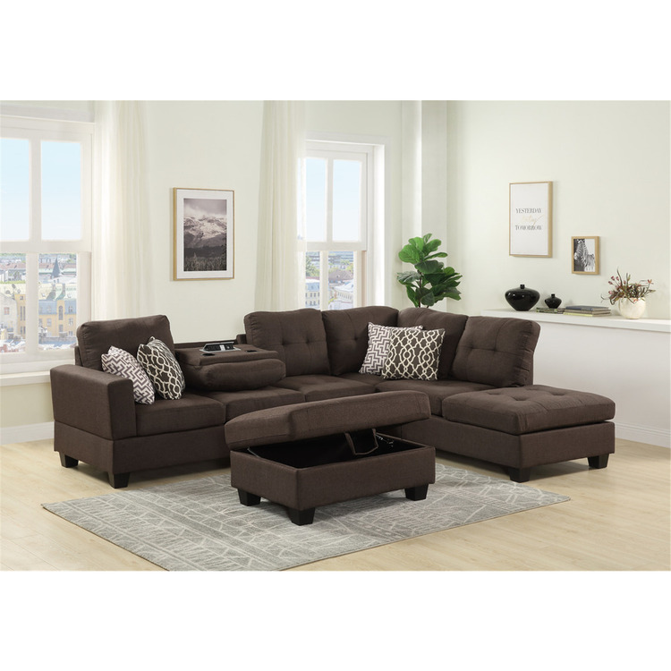 • Reversible Sofa Sectional with Dropdown Table and Storage image - 1