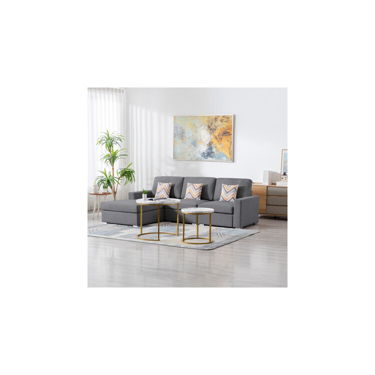 • Lilola Home Nolan Linen Fabric 3Pc Reversible Sectional Sofa Chaise with Pillows and Interchangeable Legs image - 1