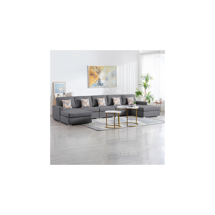 • Lilola Home Nolan Linen Fabric 5Pc Double Chaise Sectional Sofa with Pillows and Interchangeable Legs image - 1