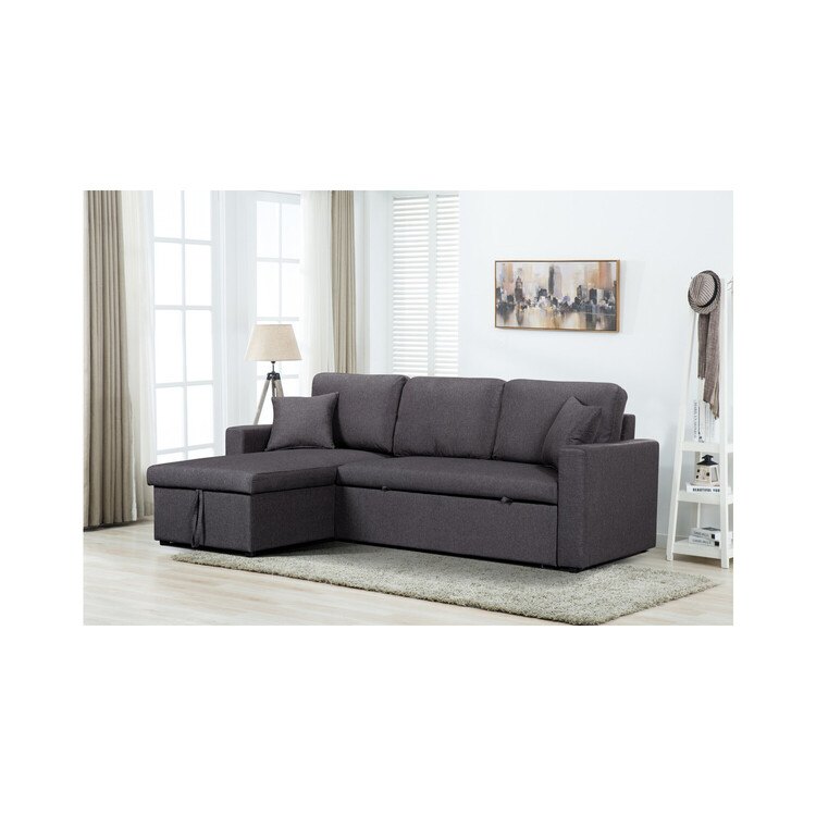 • Lilola Home Paisley Linen Fabric Reversible Sleeper Sectional Sofa with Storage Chaise image - 1