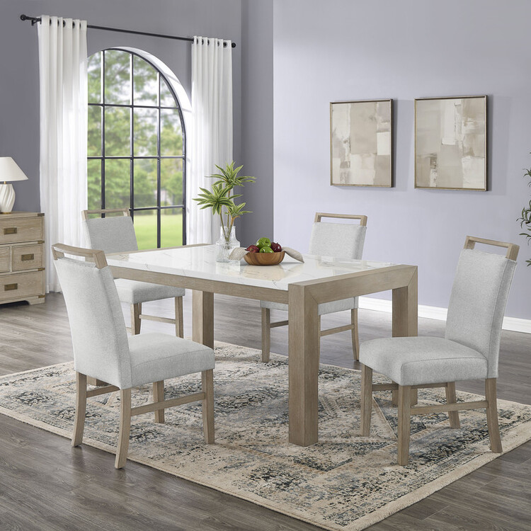 • Lilola Home Tabitha 5Pc 66"W Rectangular White Faux Marble Top Dining Set in Light Oak Finish image - 1