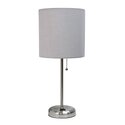 Stick Lamp with Charging Outlet and Fabric Shade Brushed Steel Base 8.50 Diameter - All the Rages
