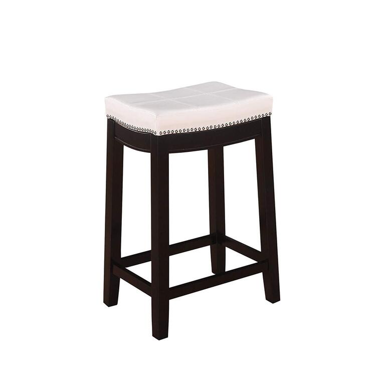 • Dark Brown Counter Stool with Vinyl Seat and Brass Trim - Linon image - 1