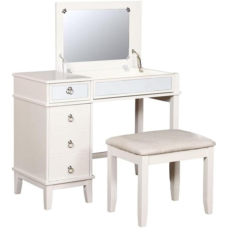 • Linon White Vanity Set with Mirror - Eva image - 1