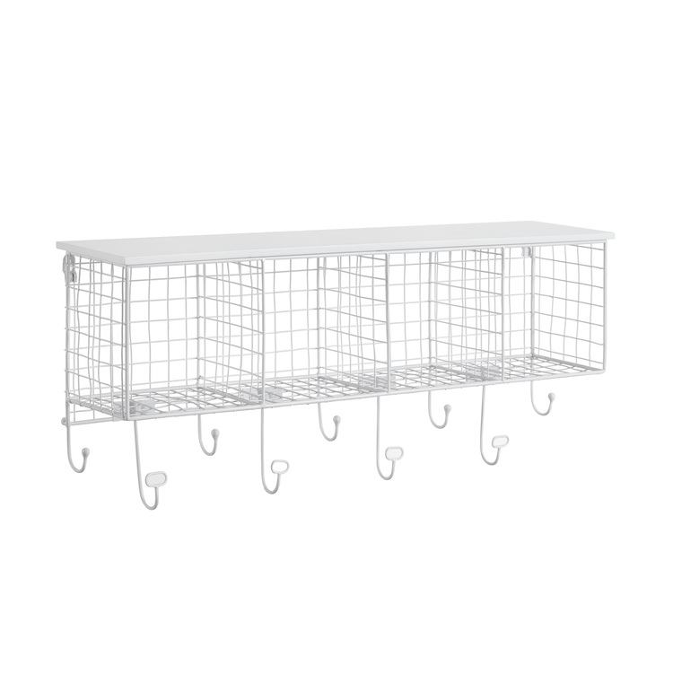White 4 Cubby Wall Shelf with Hooks and Display Area - Linon