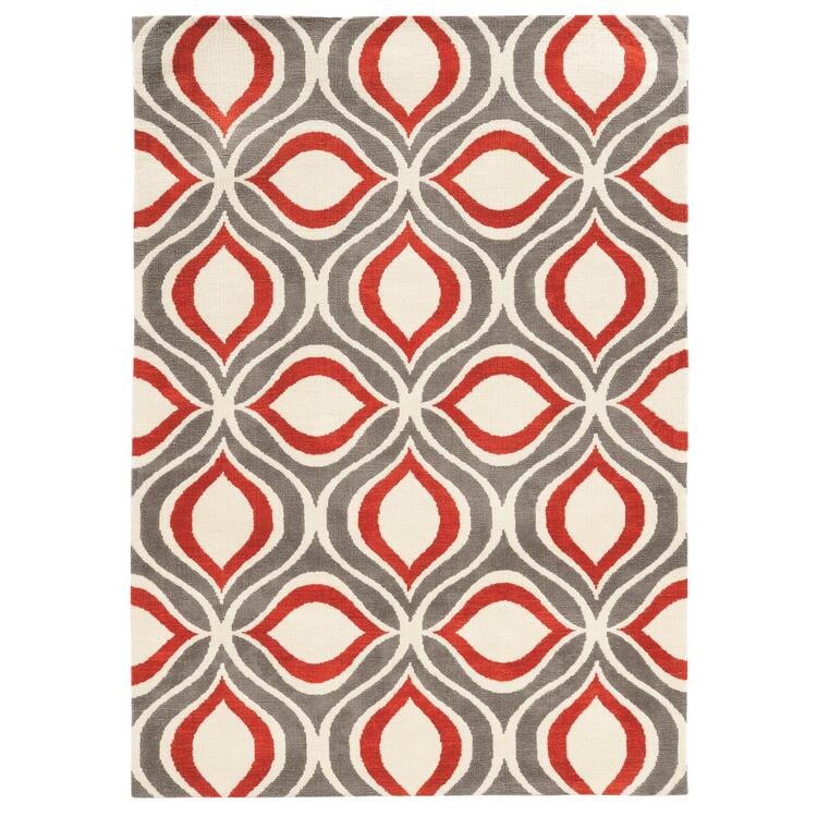 • Grey/Red Hand Tufted Geo Transitional Rug 5x7 - Linon image - 1