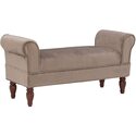 • Neutral Coffee Upholstered Bench with Dark Mahogany Feet and Rolled Sides - Linon image - 1