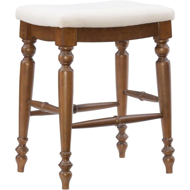 Unique and stylish, this backless counter stool will add eye-catching design to your kitchen counter or high top table. This backless stool features elegant turned legs and a plush curved seat. The neutral padded seat easily complements the walnut finish. Counter height.