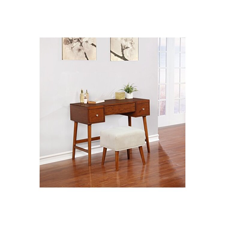 • Linon Modern Vanity Set with Stool - Walnut Birch Veneer Desk image - 1