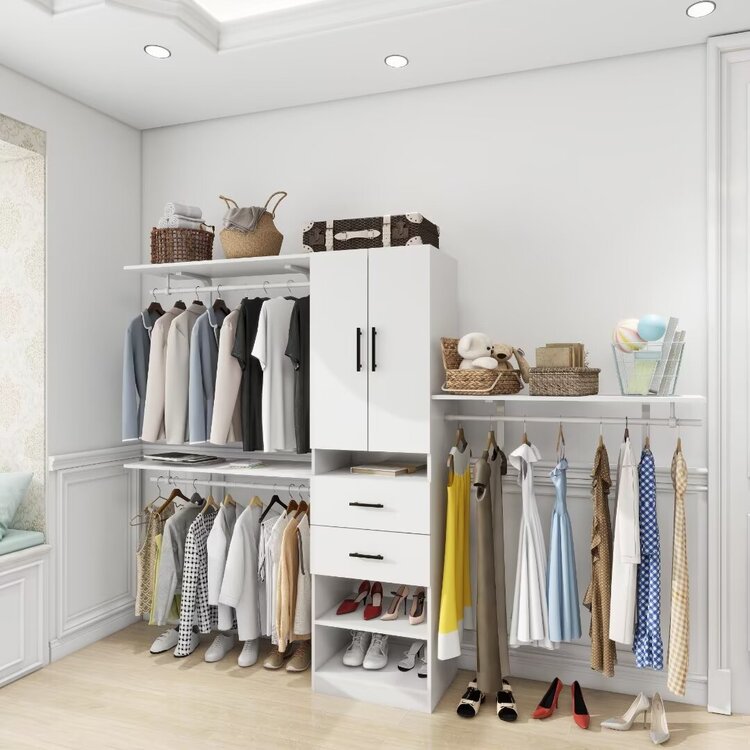 LivelyLodge Closet Organizers with Shelves, Walk in Closet Organizers and Storage with Clothing Racks for Hanging Clothes, Closet System with Drawers, Closet Systems for Walk in Closets