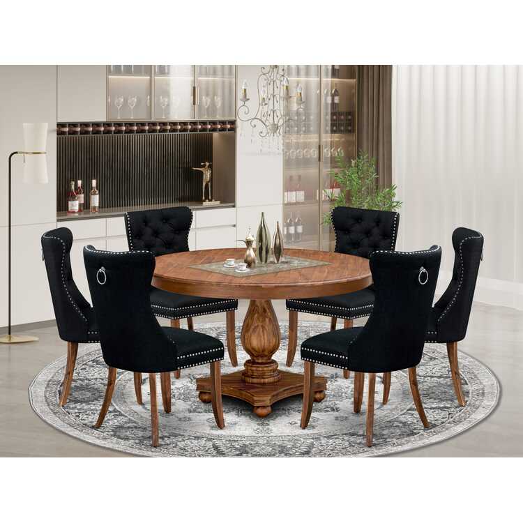 • Luxe by East West Furniture 7 Piece Dining Set with 6 Kitchen chairs Button Backs and a 54 in Finish image - 1