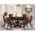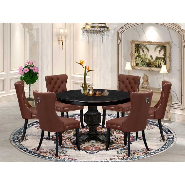 • Luxe by East West Furniture F3DA7-411-26 7 Piece Dining Table Set Consists of a 48" Round Table with Pedestal and 6 Burgandy Faux Leather Parson Chairs, Sand Blasted Black image - 1