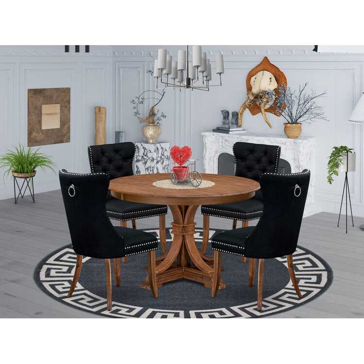 • Luxe by East West Furniture F7DA5-40N-24 5-Piece Dining Room Set with Linen Fabric 4 Black upholstered kitchen chairs, Button-Tufted Backs, and a 48"Round Table in Antique Walnut Finish. image - 1