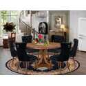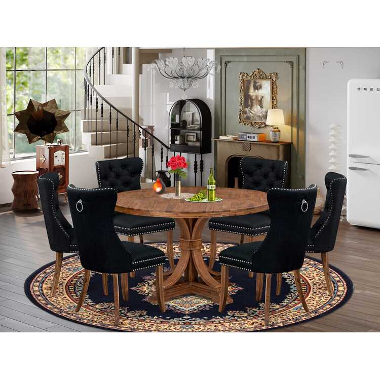 • Luxe by East West Furniture I7DA7-50N-24 7-Piece Modern Dining Set with Linen Fabric 6 Black dining room chairs, Button-Tufted Backs, and a 54"Round Table in Antique Walnut Finish. image - 1