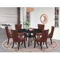 • Round Dining Table Set with 6 Burgundy Chairs - East West Luxe image - 1