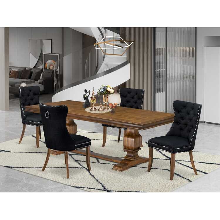 • Modern 5-Piece Dining Set - Antique Walnut & Black Linen Fabric image - 1