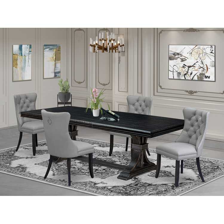 • Modern Dining Set - Table & 4 Faux Leather Chairs image - 1