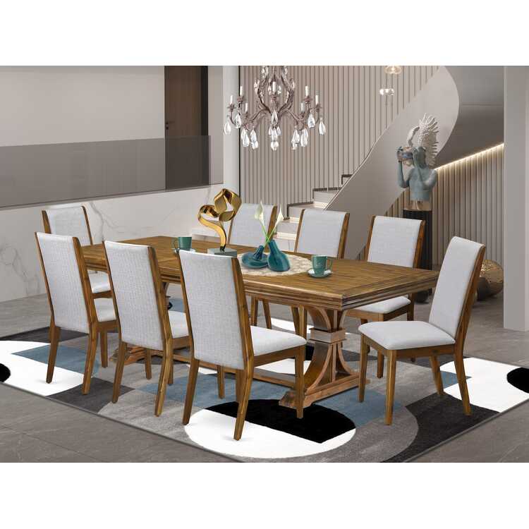 • Luxe by East West Luxy Furniture NELA9-AWA-05 9 Pieces Dining table set includes a Rectangular Kitchen Table and 8 Grey Linen Fabric Dining Room Chairs, Antique Walnut finish image - 1