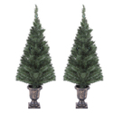 • LuxenHome Set of 2 4Ft Pre-Lit LED Artificial Pine Christmas Tree with Urn Pot image - 1