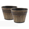 LuxenHome Set of 2 Rustic Brown Faux Wood Whiskey Barrel MgO Planters