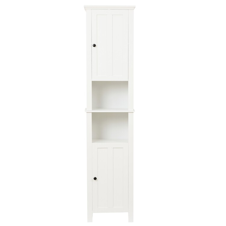 LuxenHome White MDF Wood 67-Inch Tall Tower Bathroom Linen Cabinet