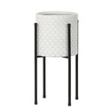 LuxenHome White Round Planter with Metal Stand - Scalloped Design