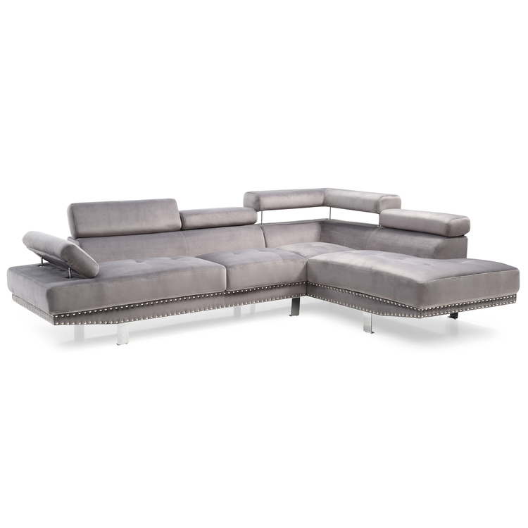 • Gray Luxurious Soft Velvet Sectional Sofa Furniture Set - Lyke Home image - 1