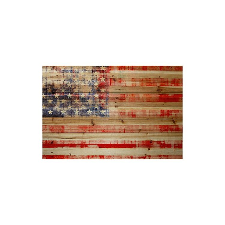 American Flag Painting Print on Natural Pine Wood