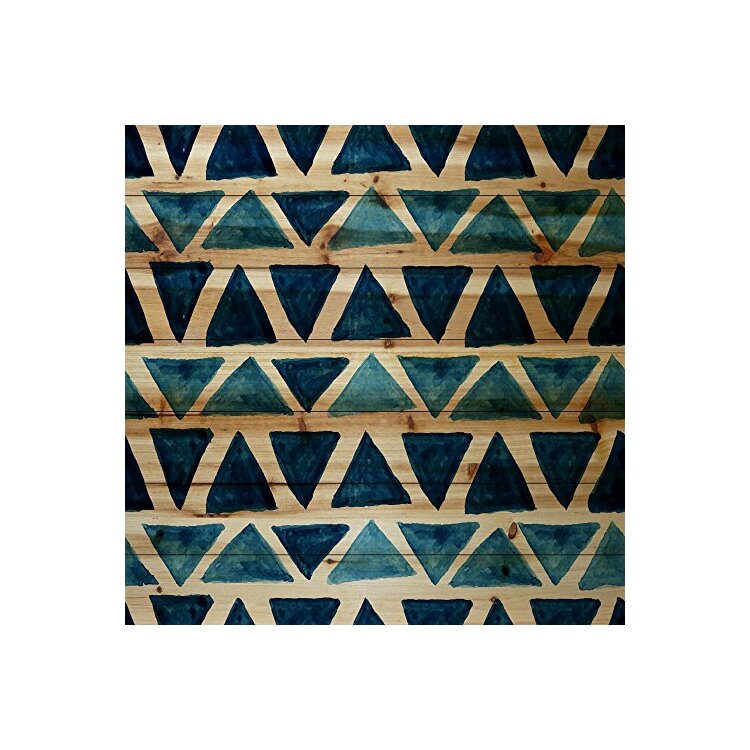 • Blue Triangle Bows Painting Print on Natural Pine Wood image - 1