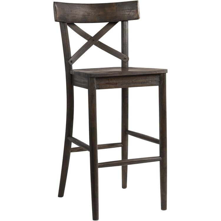 • Bar Stool - Rustic Dark Brown - Solid Wood Seat - Home Bar Counter Stool image - 1