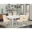 • Rectangle Dining Set with Leaf & 6 Upholstered Chairs - Linen White image - 1