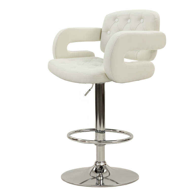 • Adjustable Bar Stool - Modern Faux Leather Tufted Counter Height Stool - White Finish image - 1