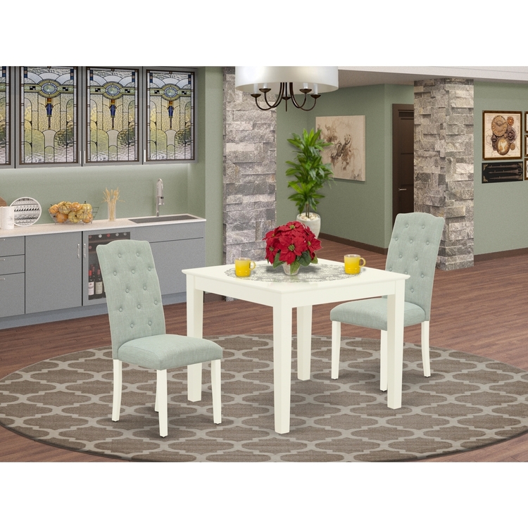 • 3Pc Kitchen Dinette Set - Square Table & 2 Parson Chairs - Baby Blue image - 1