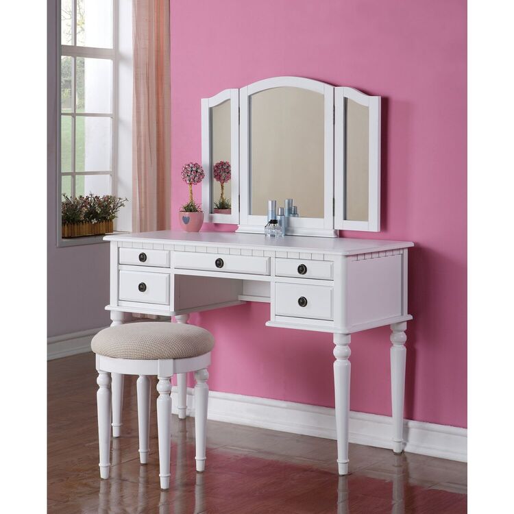 • French Flair Vanity Set with Mirror & Stool - Elegant Wood Makeup Table image - 1