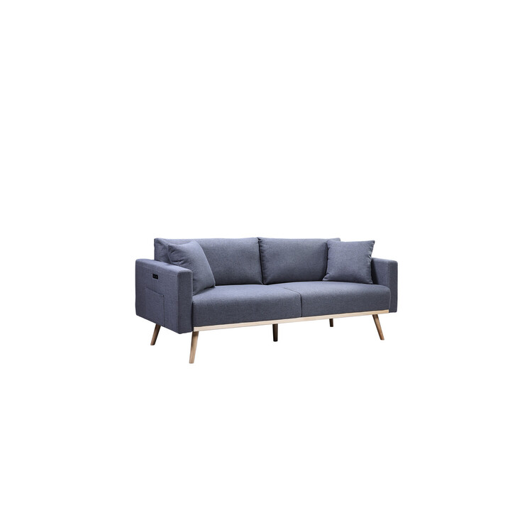 • Maykoosh Rustic Romance Dark Gray Linen Fabric Sofa with USB Charging Ports Pockets & Pillows image - 1