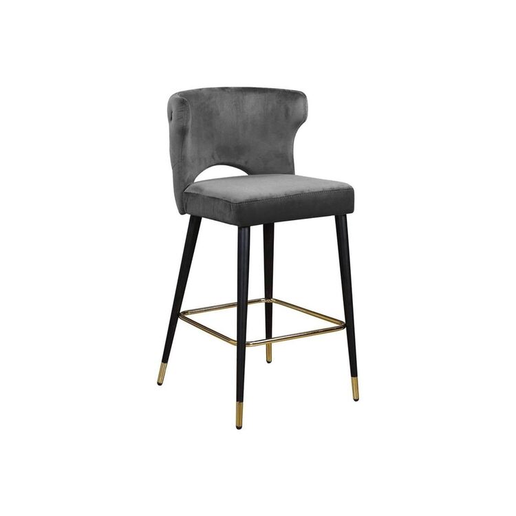 • Maykoosh Old World Charm Contemporary Velvet Upholstered Counter Height Stool with Gold Tipped, Black Metal Legs, 22" W x 19" D x 38.5" H, Set of 2 image - 1