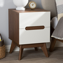 • 3-Drawer Nightstand - White & Walnut Wood Bedside Table image - 1