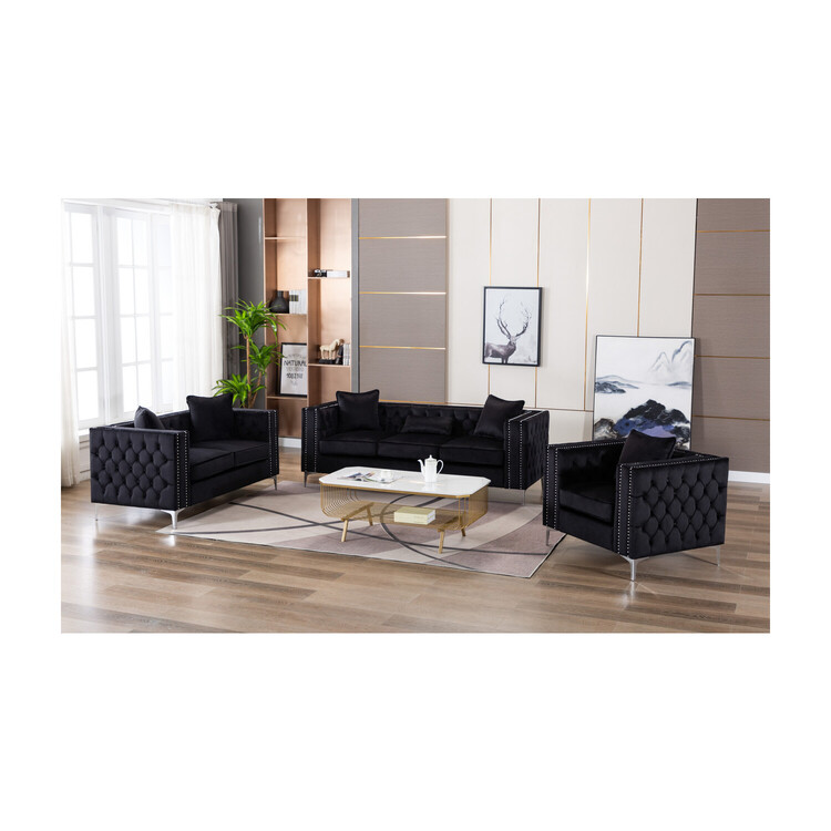 • Maykoosh Renaissance Romance Black Velvet Fabric Sofa Loveseat Chair Living Room Set image - 1