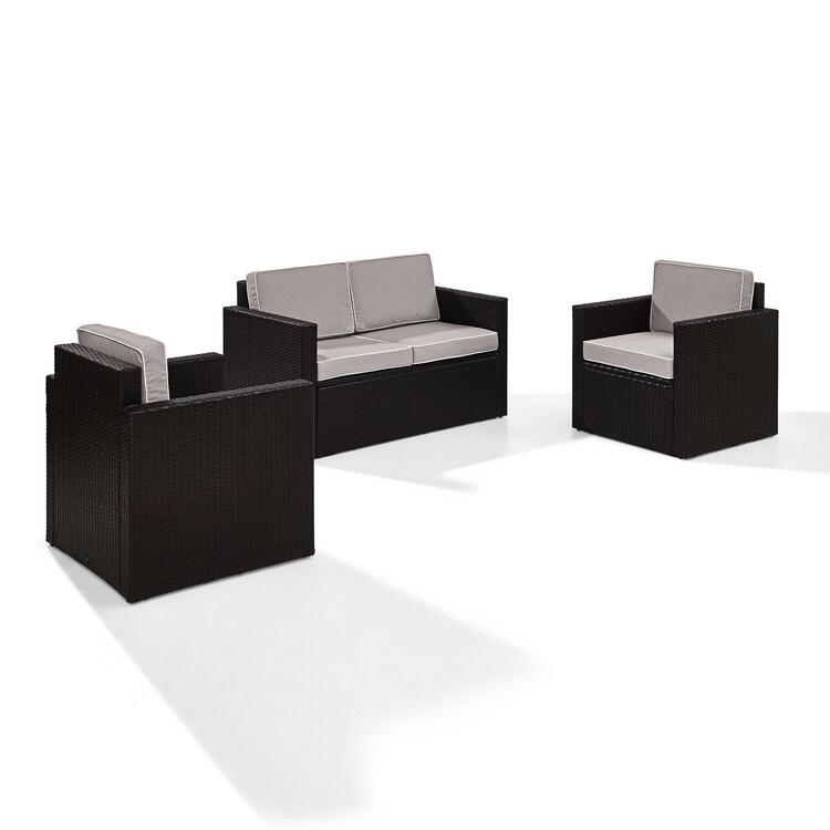 • Maykoosh Retro Revival Outdoor Wicker 3-Piece Seating Set (Loveseat and 2 Arm Chairs), Brown with Gray Cushions - 68.25 x 126.5 x 34.5 inches, Easy to Assemble image - 1