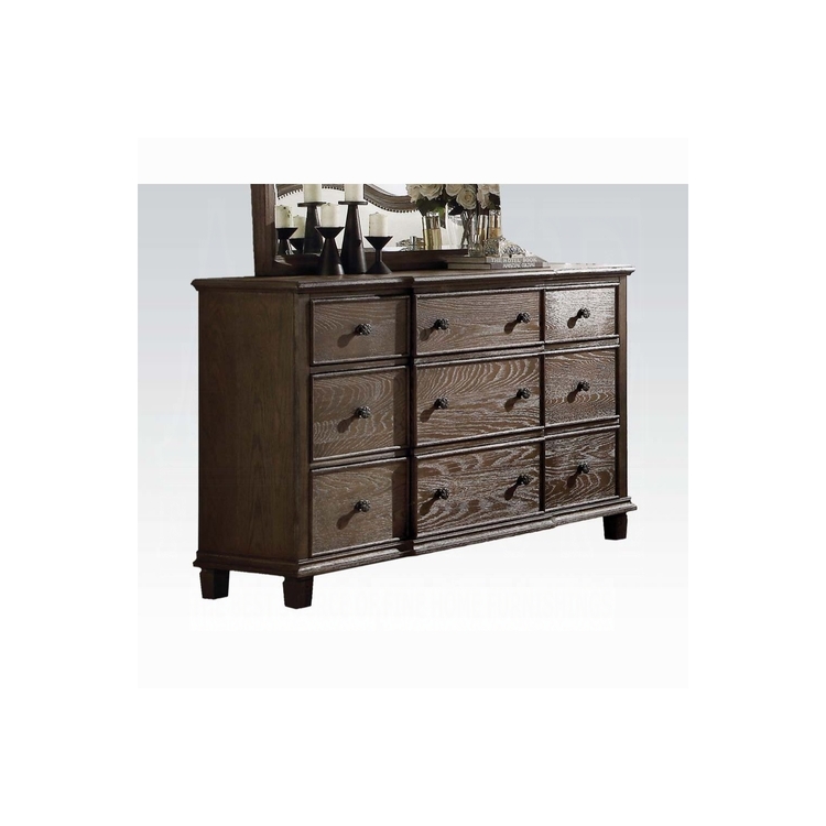 • Dresser for Bedroom - 9 Drawer Chest - Weathered Oak Finish image - 1