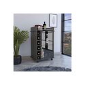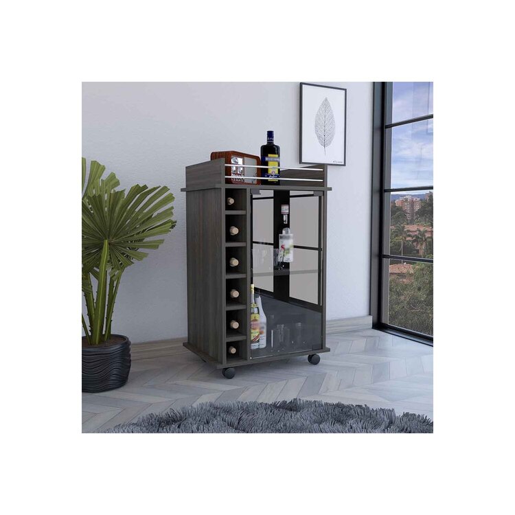 • Bar Cart with Metal Rail & Glass Door Cabinet, Espresso Finish image - 1