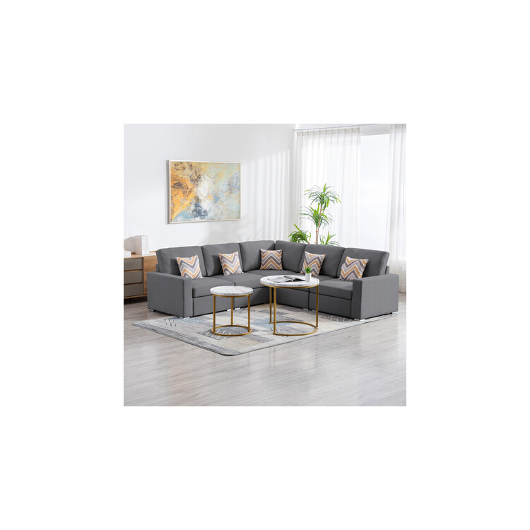 • Maykoosh Tuscan Temptations Linen Fabric 5Pc Reversible Sectional Sofa with Pillows and Interchangeable Legs image - 1