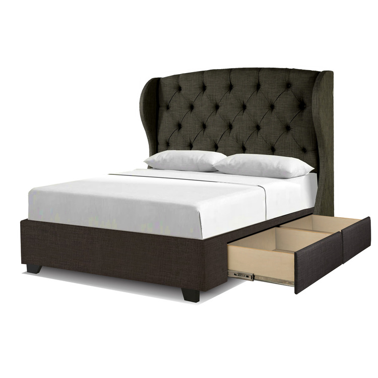 • Maykoosh Upholstered Coastal Craftsman Platform Bed With 2 Drawers, Grey, Queen image - 1