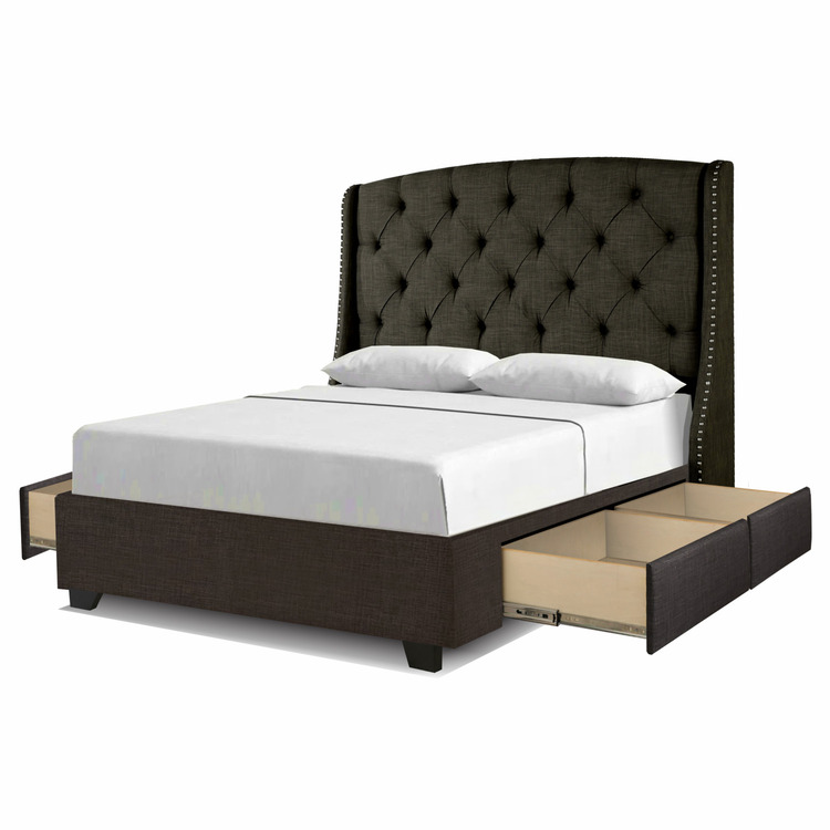 • Maykoosh Upholstered Lakefront Luxury Platform Bed With 4 Drawers, Grey, King image - 1